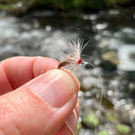 This particular version of a futsū kebari combines three of Mike's favorite colors and materials - a brownish, "buggy" yarn body to emulate a meaty insect, a red, hot spot attractor head, and a few twists of highly visible, stiff white hackle around the middle. If this is your first time fishing a futsū, the white hackle will make the fly easier for you to see as you manipulate and/or drift it through the water. This Hot Spot Futsū kebari set, skillfully tied by Tenkara USA's fly tyers, makes it easy to join #teamfutsu.